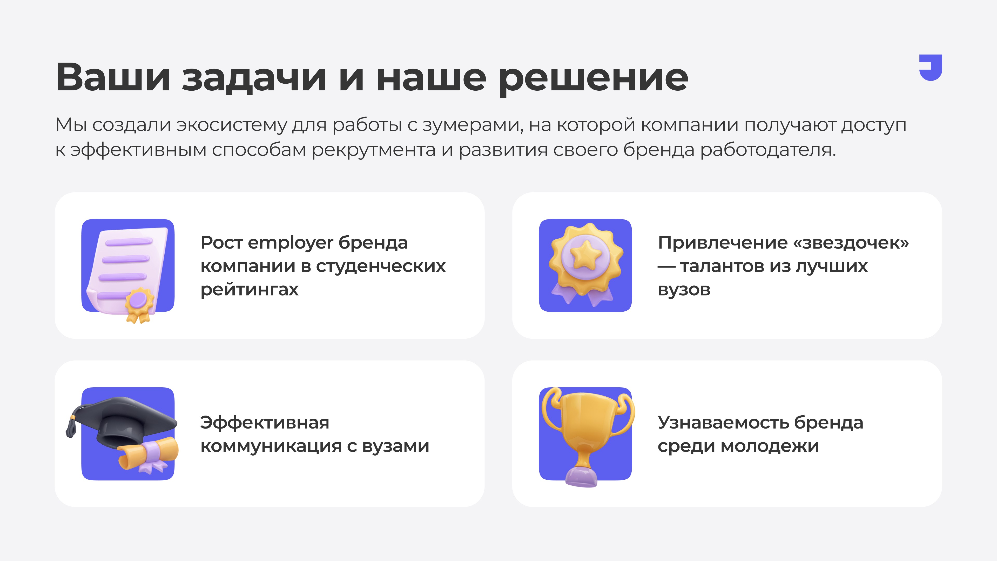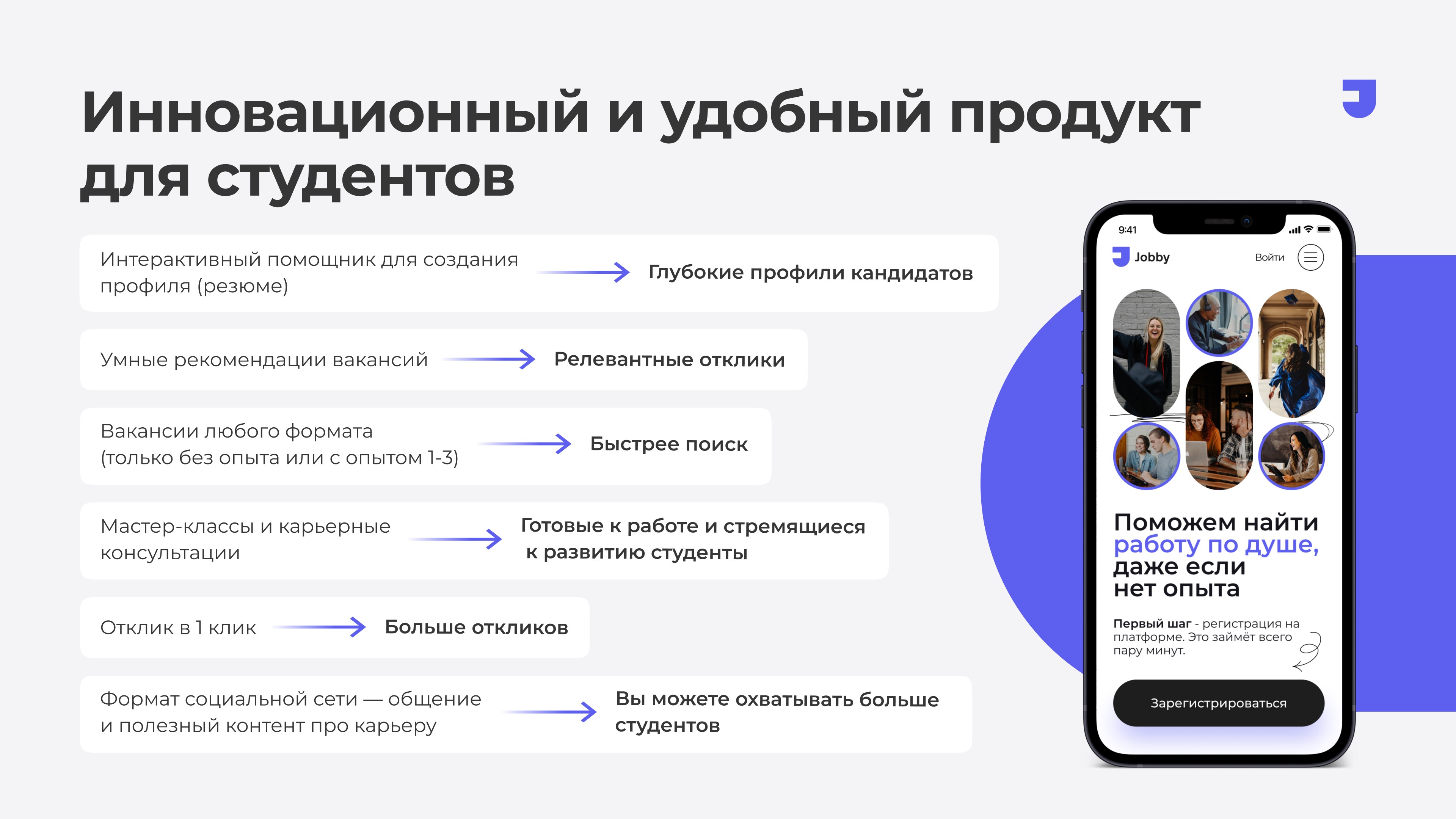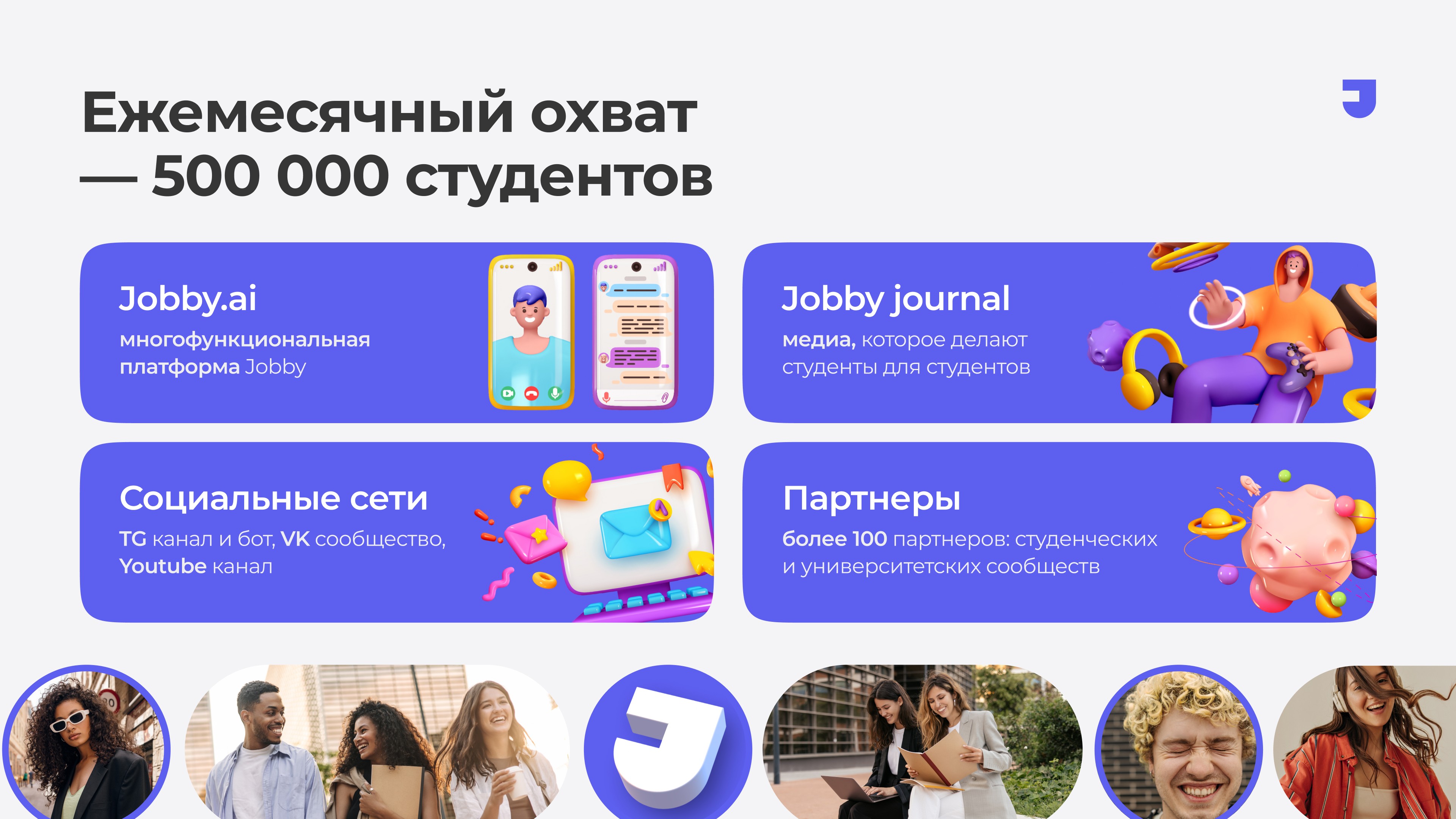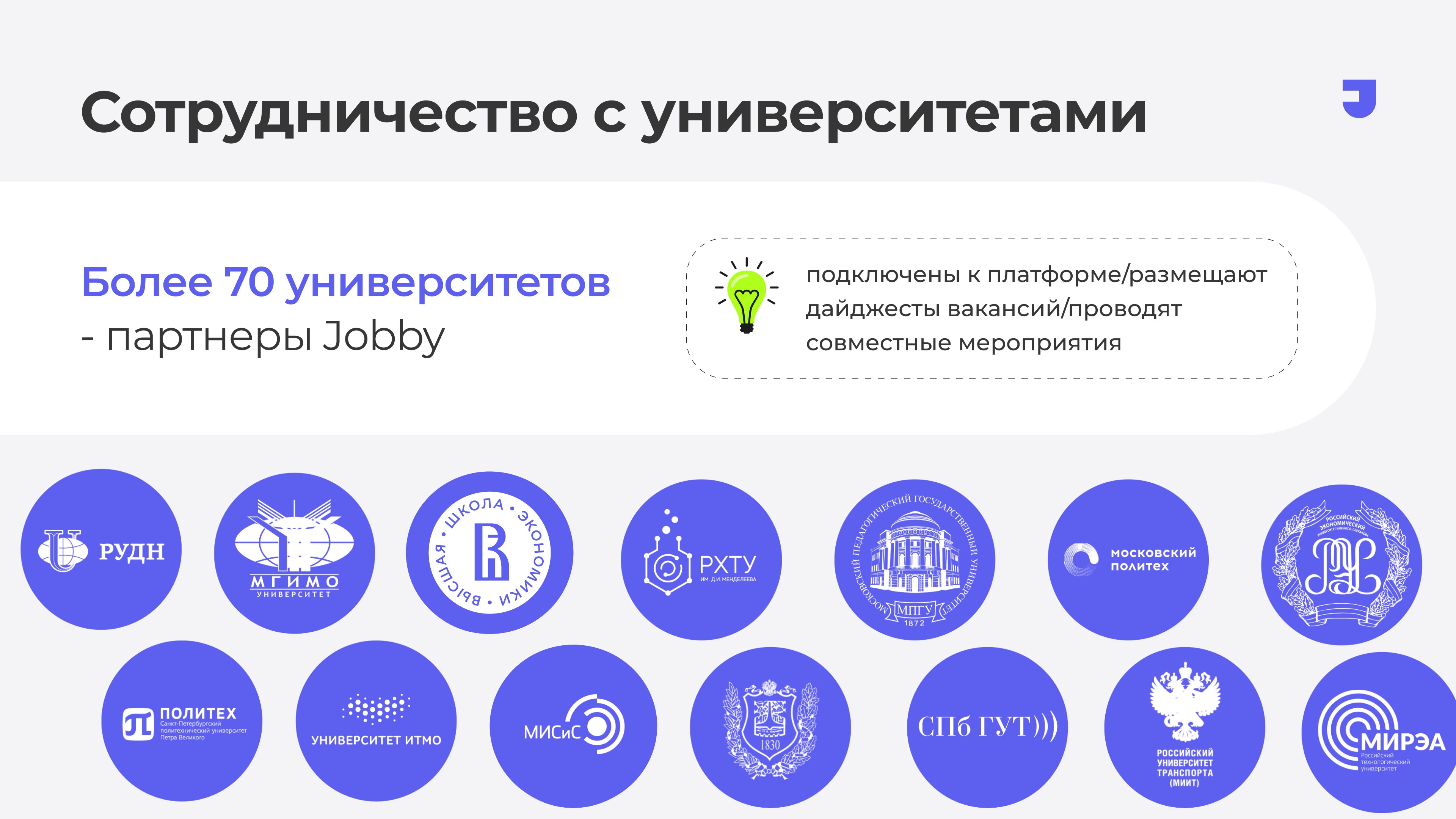 Создать презентацию для партнёрской коммуникации, которая помогает презентовать Jobby и выстраивать сотрудничество с вузами, компаниями и другими площадками.