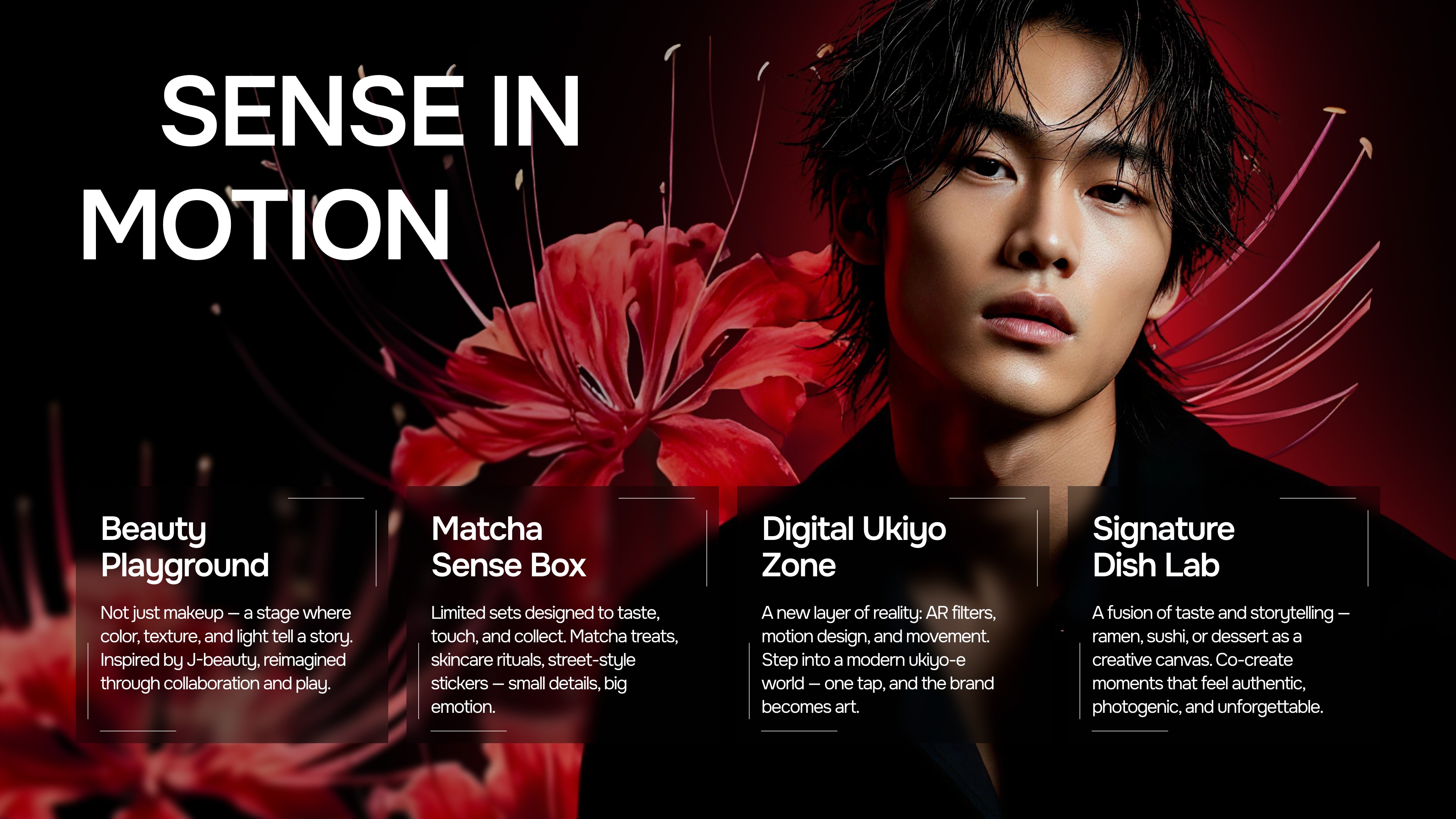 Создала визуально цельную презентацию с японской эстетикой, выразительной типографикой и яркой fashion-подачей.
