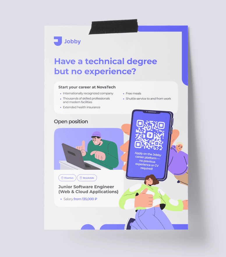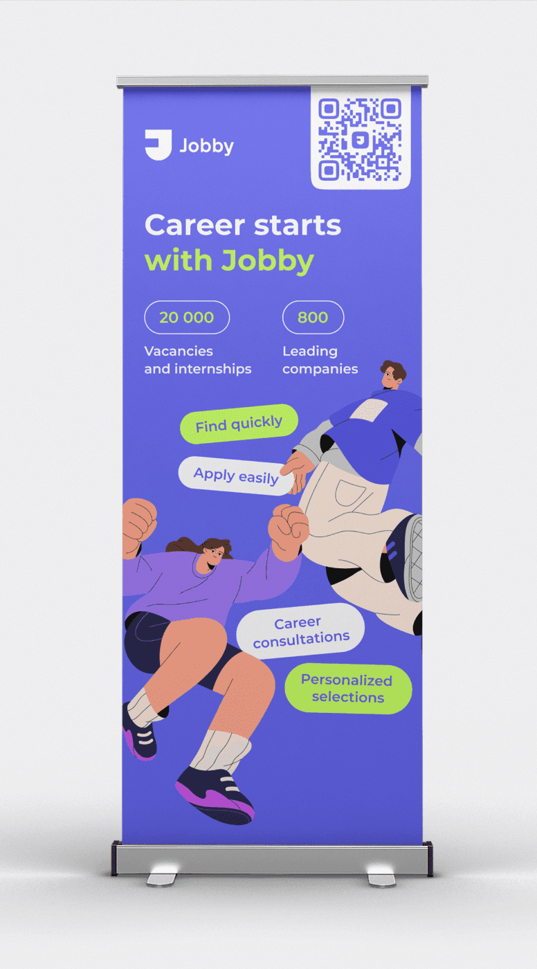 Разработать печатную продукцию для Jobby, которая привлекает внимание на мероприятиях и усиливает узнаваемость бренда.