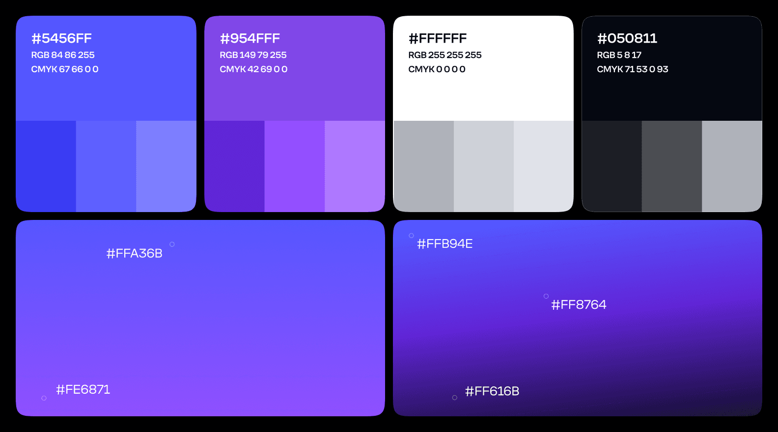Создала технологичную визуальную систему с логотипом, цветовой палитрой, графикой и правилами применения для носителей.